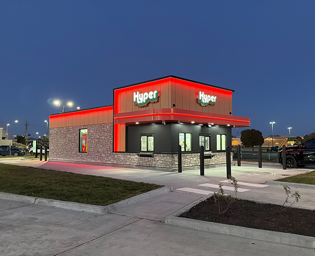 Efficient design permits true dual stacking with walk up window.